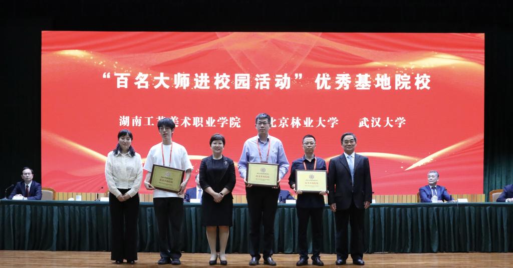刘光平领取“百名大师进校园活动”优秀基地院校奖牌