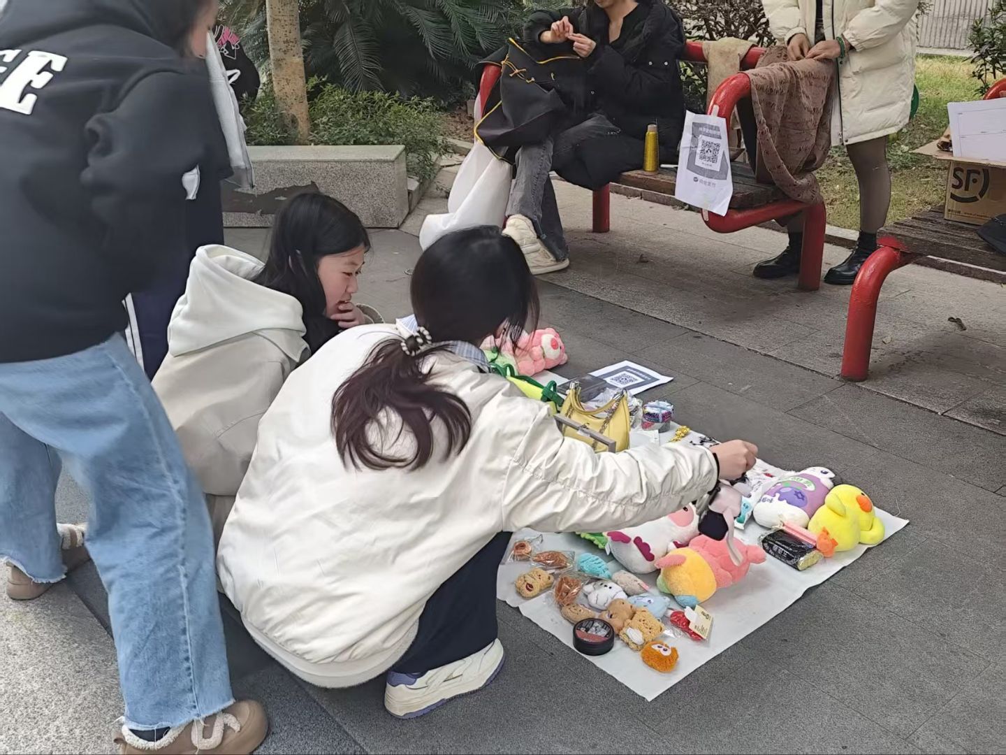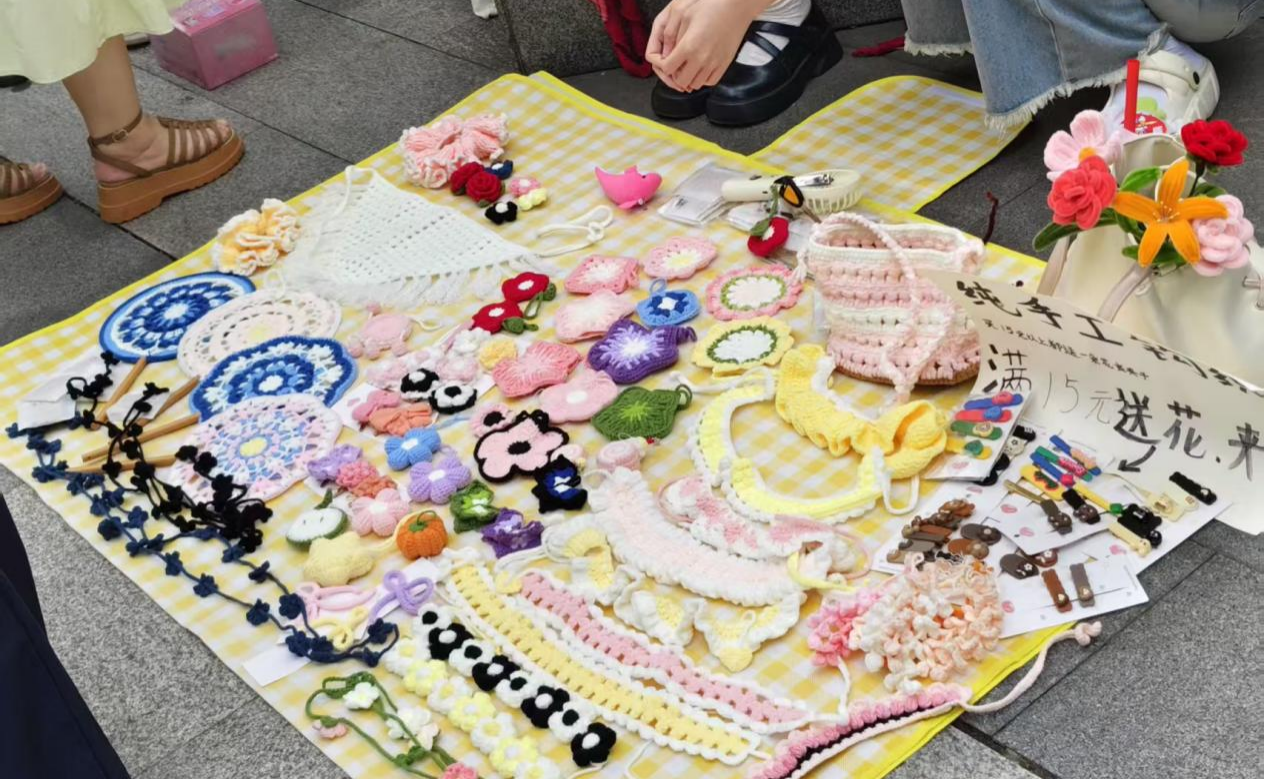 “从熬夜赶工打磨钩织作品,到提前蹲点抢占摊位、细心手写价签,才真切懂了‘把爱好变成生意’,远没有想象中简单。但卖出第一份作品时,那种成就感简直爆棚!” 摆摊的张同学举着刚收到的订单,眼里闪着明亮的光。她的摊位前,几位同学正拿着发夹比对发型,试戴、砍价、付款的流程里,藏着青年对 “创业” 最鲜活的初体验。