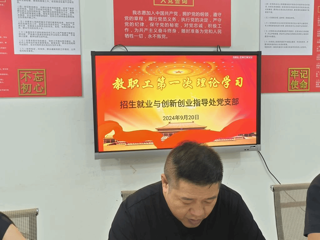 9月20日下午,招生就业与创新创业指导处党支部在党员会议室召开了本学期第一次教职工政治理论学习。本次学习由支部书记张万铝主持,支部在校教师参加了学习。